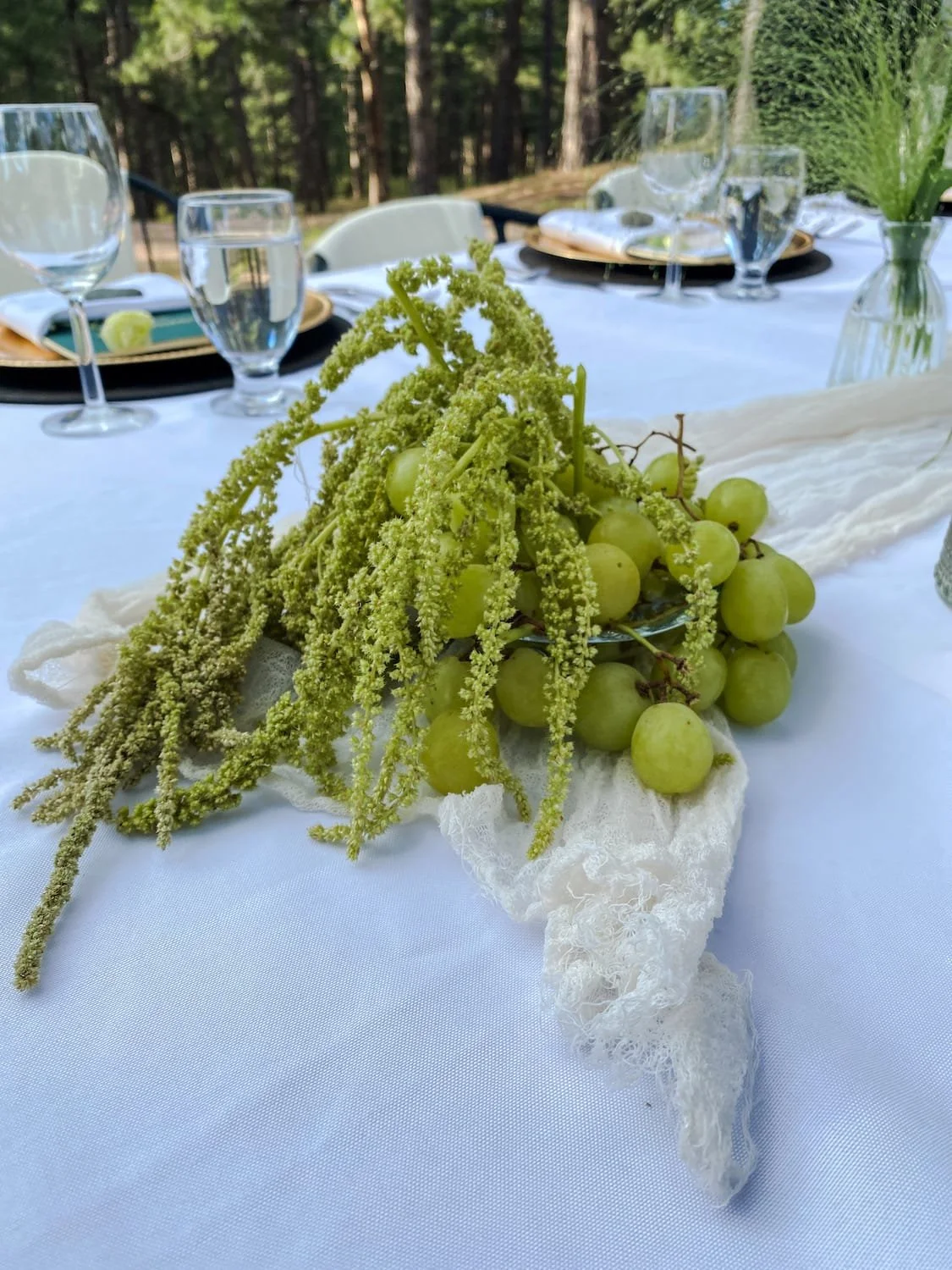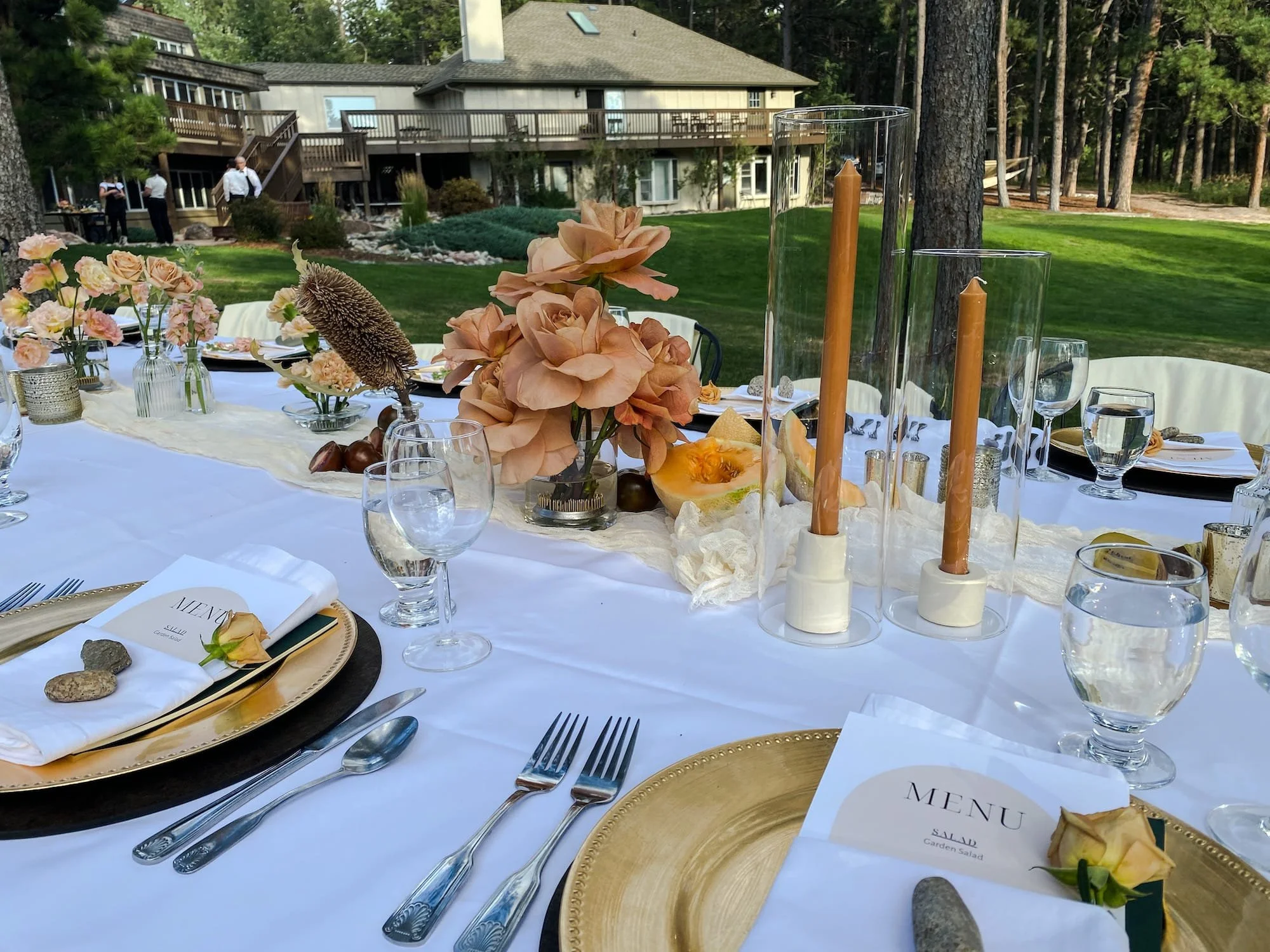 We are able to provide some tabletop decor including candles. We do not provide items such as linens, chargers, dishes, or cutlery.